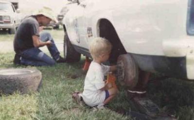 | A young Collin hard at work on his Dad's race car. June 2006 |