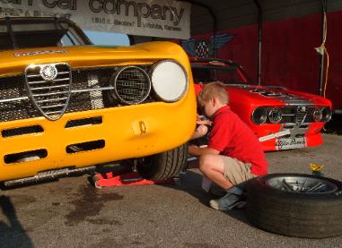 | My brother, Erik at speed in his vintage/historic 2L Alfa GTV an below in his 71 Alfa Spider 1750 |