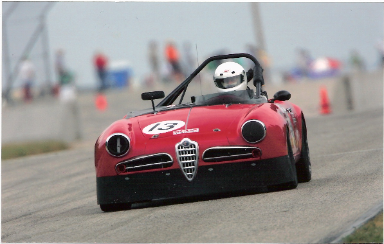 | Webmaster Curtis at speed in his SCCA Production class Alfa Giulietta Spider |